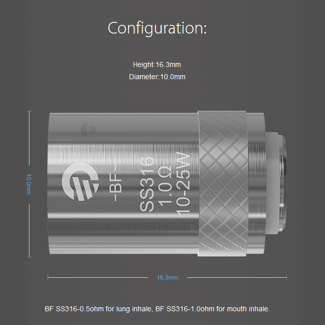 BF SS316L Coil: 1,0 Ω (10-25 Watt)